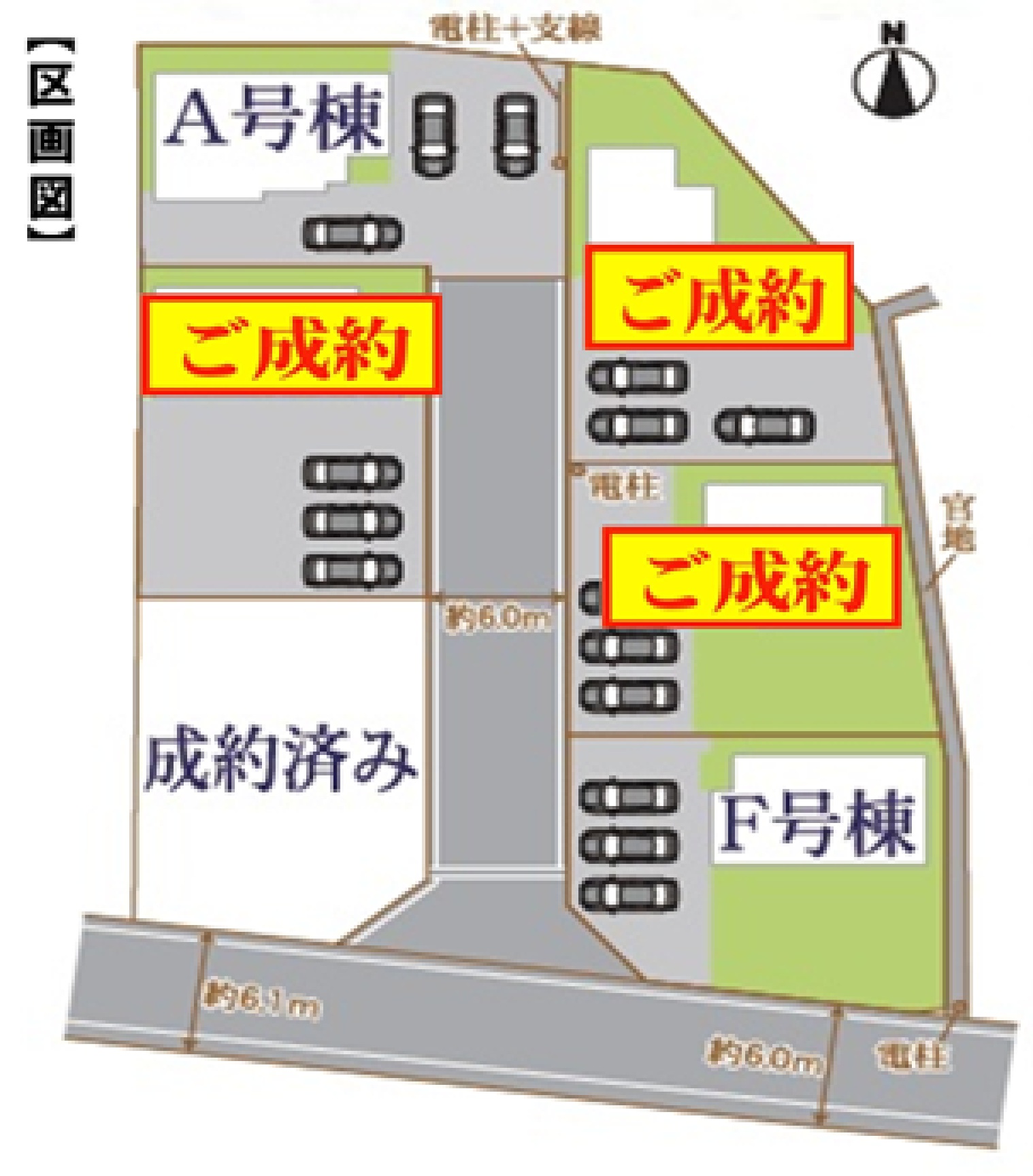 ◆全棟敷地面積60坪以上、前面道路も6m以上で駐車も安心です。