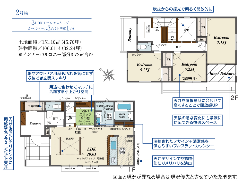 【敷地面積151m2超】×【建物面101m2超】×【カースペース3台(車種による)】